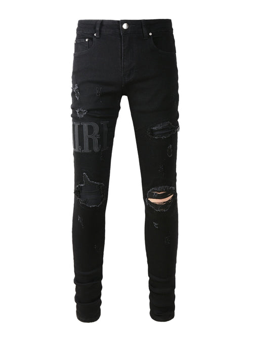 Black Writing Ripped Patch Jeans